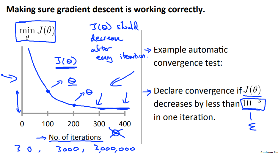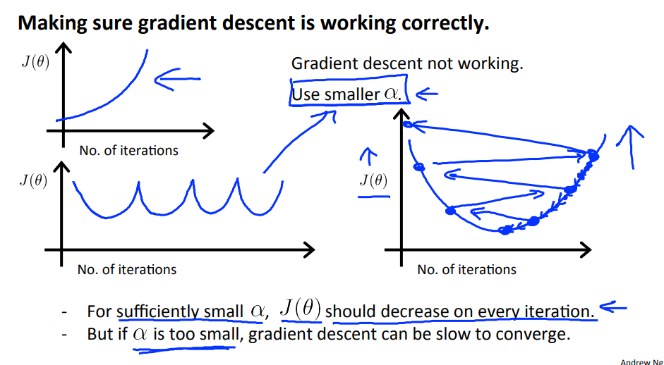 매 iteration마다 $J(\theta)$가 줄어들게 되면 경사하강이 잘 작동되고 있다고 할 수 있다.