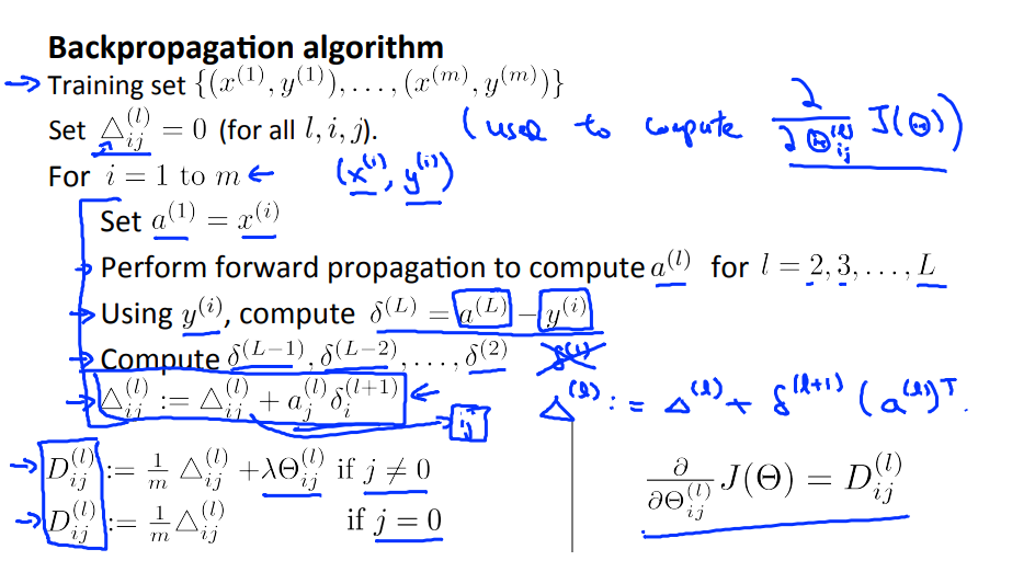- the double sum simply adds up the logistic regression costs calculated for each cell in the output layer