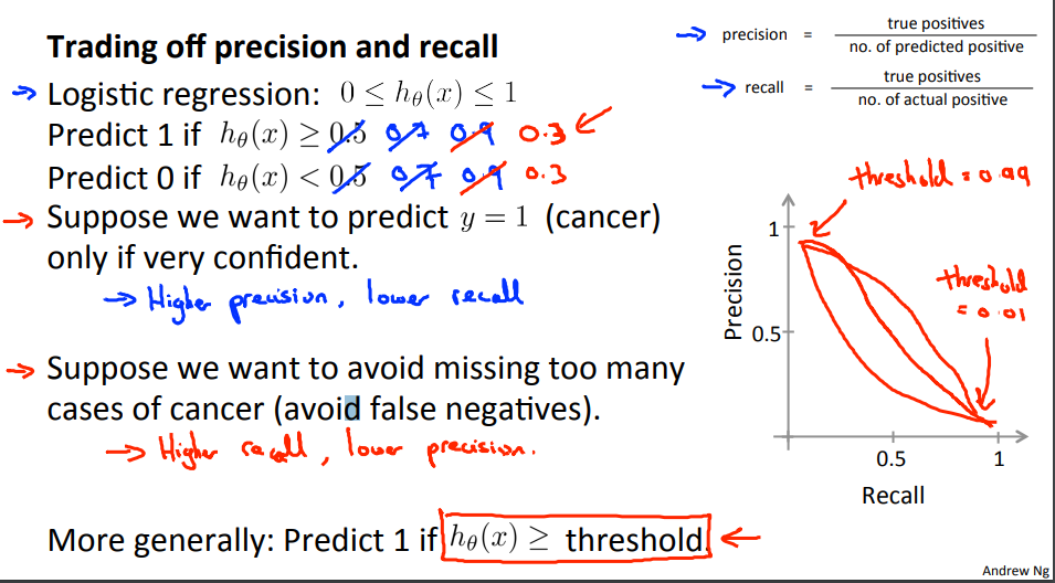 암환자를 예측하는 모델에서 전체 데이터 중에서 실제 암환자의 수가 1% 라고 하였을 때 모델의 정확도가 99%라는 것은 모델이 잘 예측해서라기 보다 데이터의 특성으로 인해 정확도가 높게 나온것이다. 정확성을 판단하는 방법으로 precision 과 recall 이 있다.