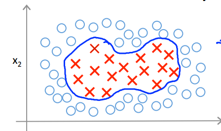 $y=1 \ \ \ \ if \ \ \ \ \theta_0 +\theta_1x_1+\theta_2x_2+\theta_2x_1x_2+\theta_4x_1^2+\theta_5x_2^2 + ... \ge0$ 일 때