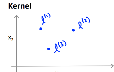 $l^{(1)}, \ \ l^{(2)},\ \,l^{(3)}$는 landmark로 주어진 x에 대해 새로운 feature에 의존한 proximity임.